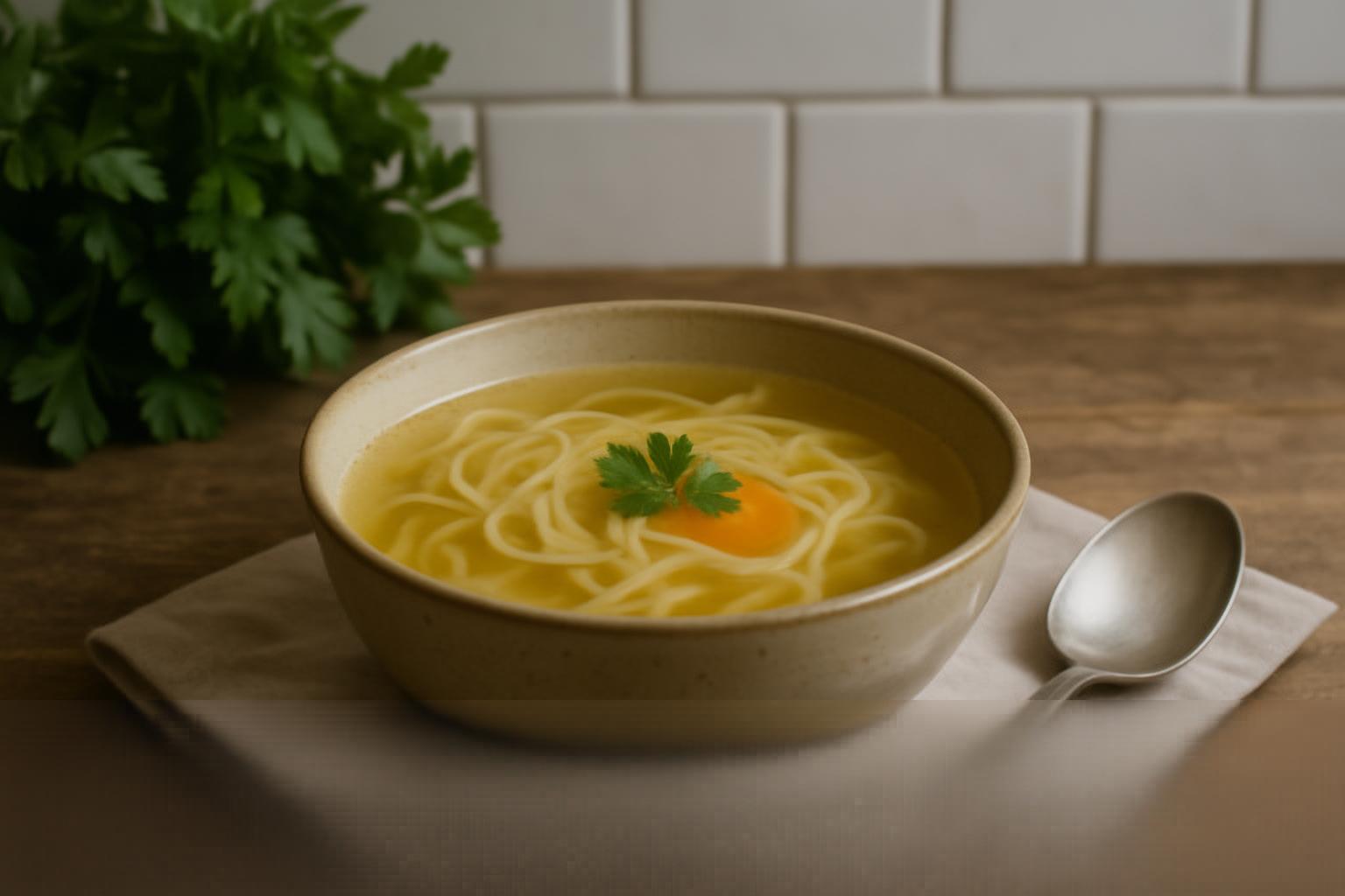 Ten przepis powstał z potrzeby powrotu do prostoty. Rosół gotowany powoli, na naturalnych składnikach, to nie tylko smak dzieciństwa, ale też sposób na zatrzymanie się w codziennym biegu. Lubczyk, ziele angielskie i liść laurowy nadają mu charakteru, który pamiętamy z domowej kuchni naszych babć.